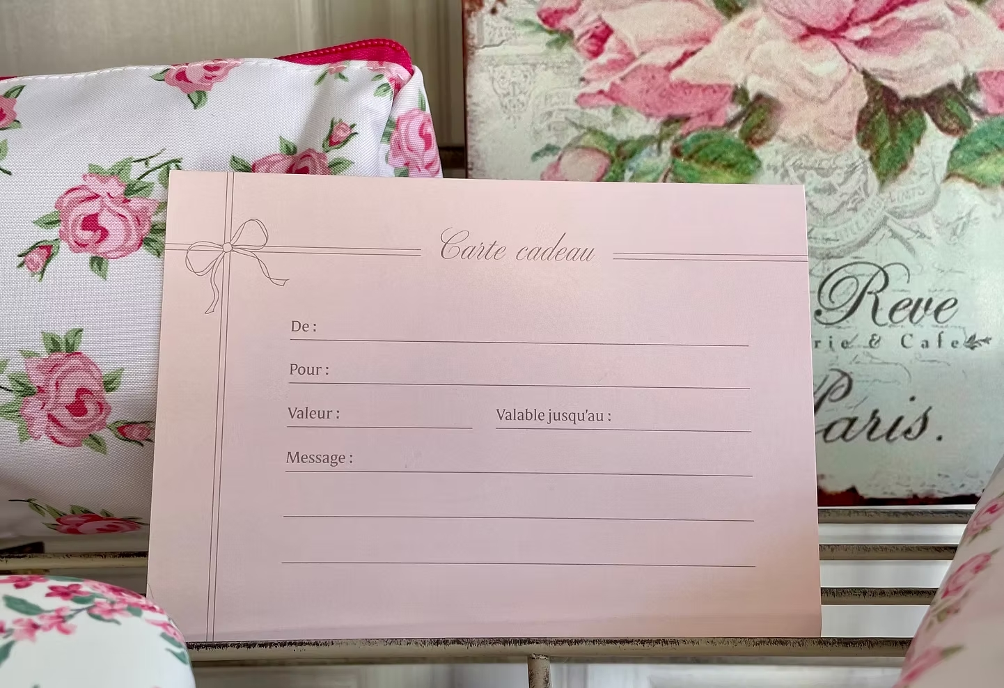 Valable sur toutes nos douceurs sucrées, boissons réconfortantes et sur nos articles de décoration et brocante, elle s’adapte à toutes les envies et tous les budgets.